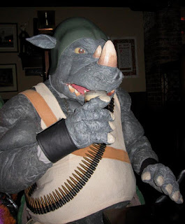 If you don't know who Bebop and Rocksteady are, then you had a horrible childhood and I feel sorry for you. I'm not sure what the story is behind these costumes, but I won't question it.