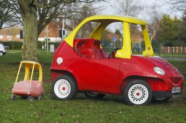 British man, John Bitmead, built an street legal, full-sized version of Playskool's "Cozy Coupe" car that we all probably had at some point as kids. Why you may ask?